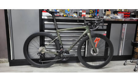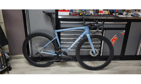 La Tarmac SL8 Expert ofrece un rendimiento excepcional con un grupo completo SRAM Rival eTap AXS con medidor de potencia, un juego de ruedas tubeless ready de carbono C38 y una potencia SL7 con manillar de aleación Specialized Expert Shallow Drop que la convierten en una bicicleta accesible llena de rendimento.